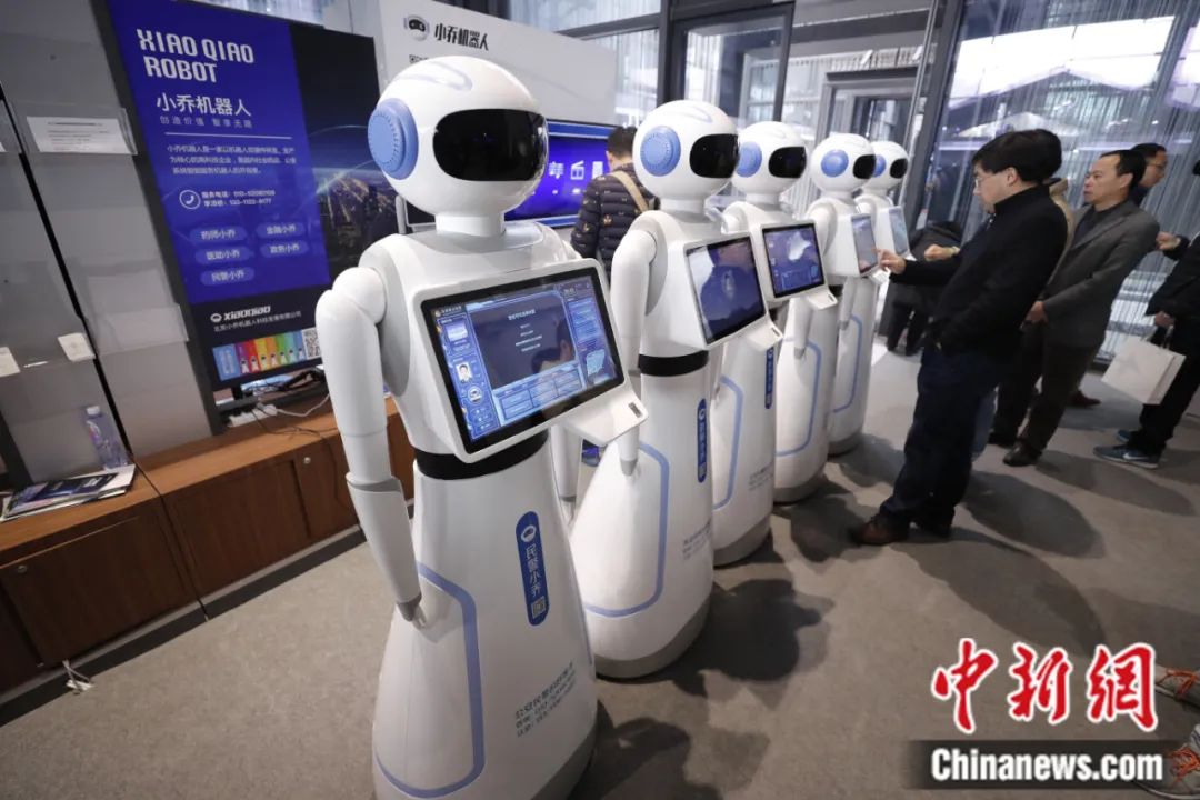 第四屆世界互聯(lián)網(wǎng)大會“互聯(lián)網(wǎng)之光”博覽會上,參觀者體驗人工智能機器人。杜洋 攝
