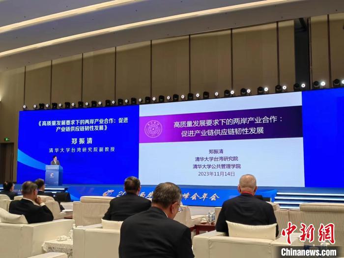 11月14日,清華大學(xué)公共管理學(xué)院、臺灣研究院副教授鄭振清在兩岸企業(yè)家峰會10周年年會上作主題演講。(受訪者供圖)