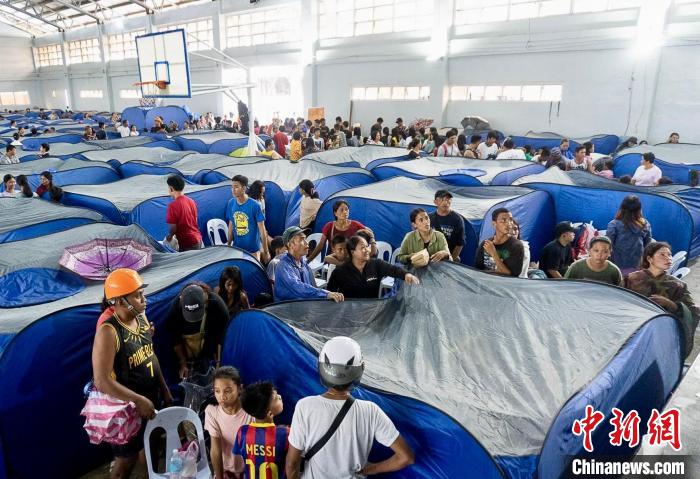當(dāng)?shù)貢r(shí)間11月21日,菲律賓北薩馬省受災(zāi)民眾被轉(zhuǎn)移至一處臨時(shí)避難場(chǎng)所。(北薩馬省信息辦公室供圖)