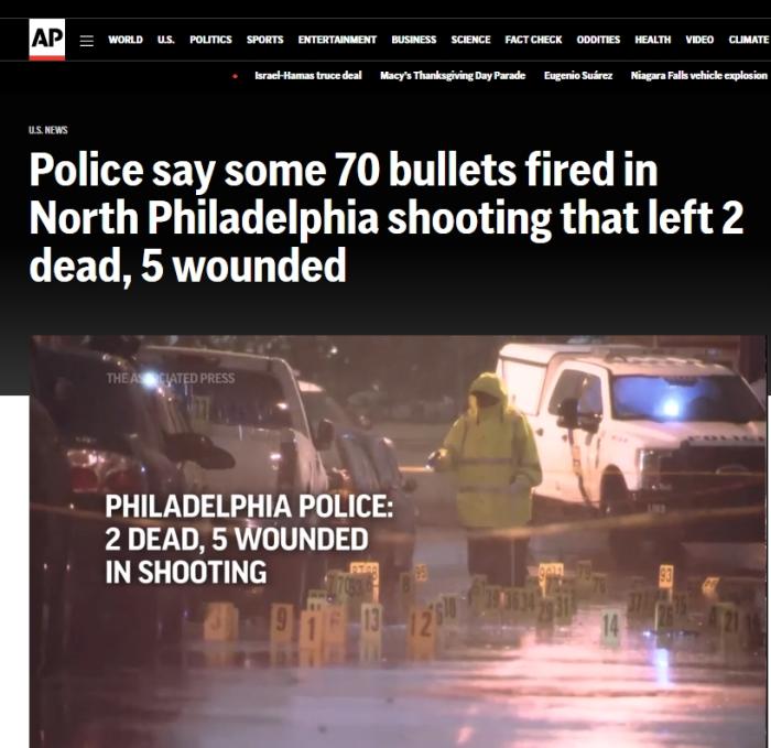 美國(guó)費(fèi)城槍擊事件致2死5傷,槍手發(fā)射70發(fā)子彈仍未被捕