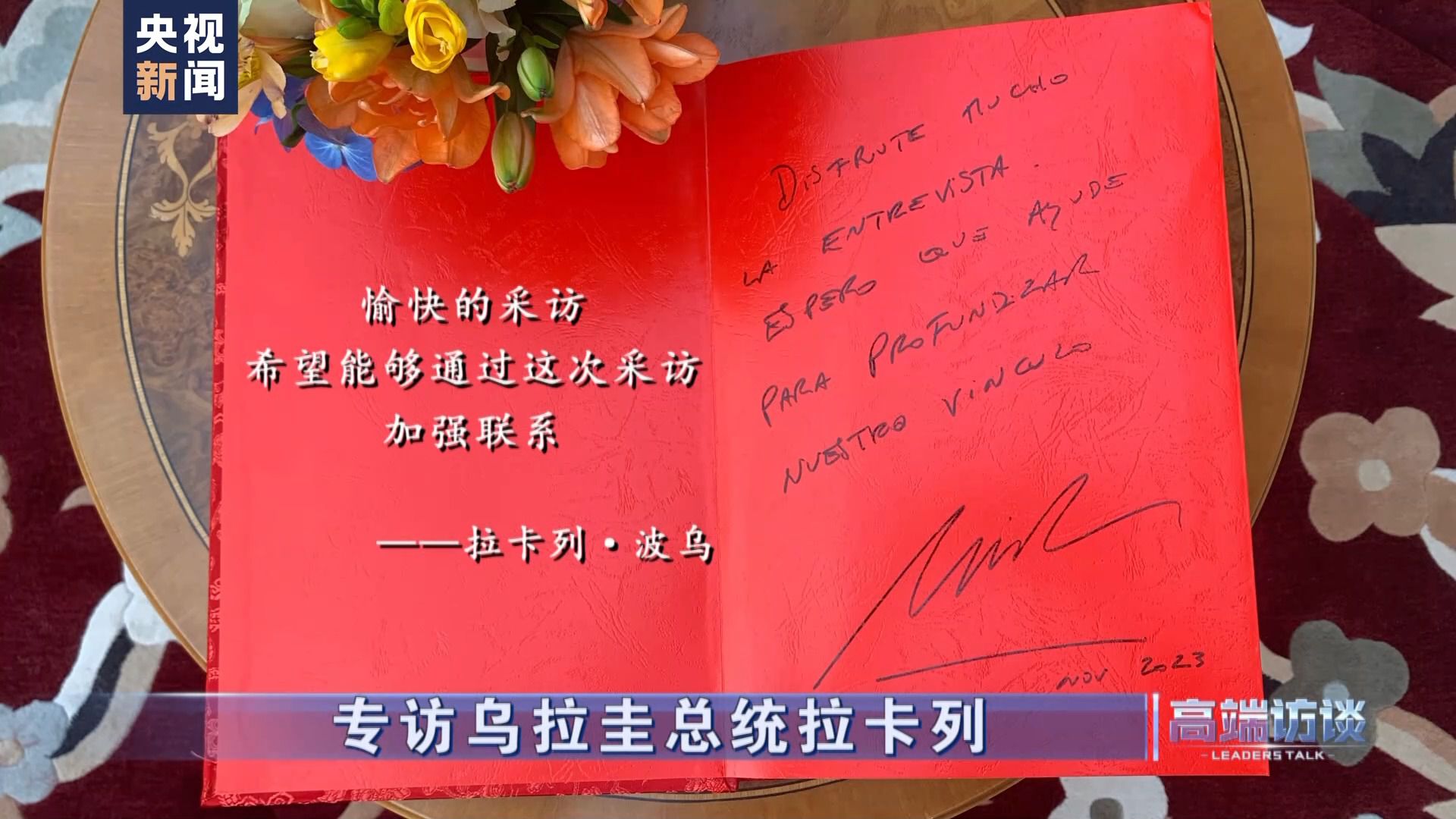 烏拉圭總統(tǒng)拉卡列·波烏在接受總臺(tái)專(zhuān)訪后題詞