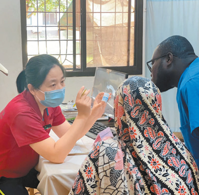 自1964年起,中國一直向坦桑尼亞桑給巴爾派遣醫(yī)療隊(duì)。中國醫(yī)療隊(duì)為當(dāng)?shù)厝嗣裉峁┽t(yī)療服務(wù),培訓(xùn)當(dāng)?shù)蒯t(yī)務(wù)人員,推動了桑給巴爾衛(wèi)生事業(yè)的發(fā)展。圖為中國(江蘇)第三十二期援桑給巴爾醫(yī)療隊(duì)隊(duì)員為當(dāng)?shù)鼗颊邫z查。
