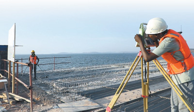 坦桑尼亞馬古富力大橋由中國土木工程集團(tuán)有限公司和中鐵十五局聯(lián)合承建,連接坦桑尼亞蓋塔省和姆萬扎省,是坦桑尼亞重要的內(nèi)陸國際通道。大橋建成后將極大改善當(dāng)?shù)亟煌顩r,帶動坦桑尼亞與周邊國家的互聯(lián)互通,促進(jìn)區(qū)域經(jīng)濟(jì)社會發(fā)展。圖為該項(xiàng)目外籍工程師正在使用全站儀進(jìn)行室外測控。