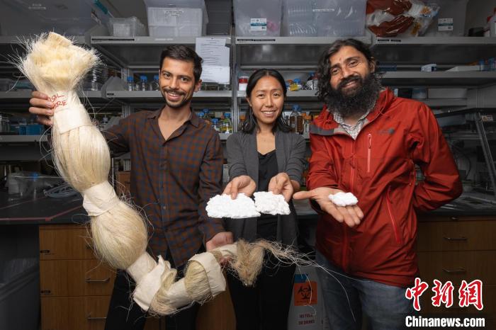 研究人員展示作為吸水填充物的劍麻(圖片來自斯坦福大學Andrew Brodhead)。施普林格·自然 供圖