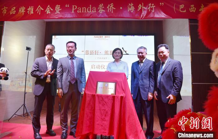 戴浚偕田玉震,葉周永,巴西中國大西南同鄉(xiāng)總會會長李新城,巴西華文教育慈善基金會、圣保羅慈佑學校代表羅淑君共同為“蓉僑軒·熊貓書屋”揭幕。