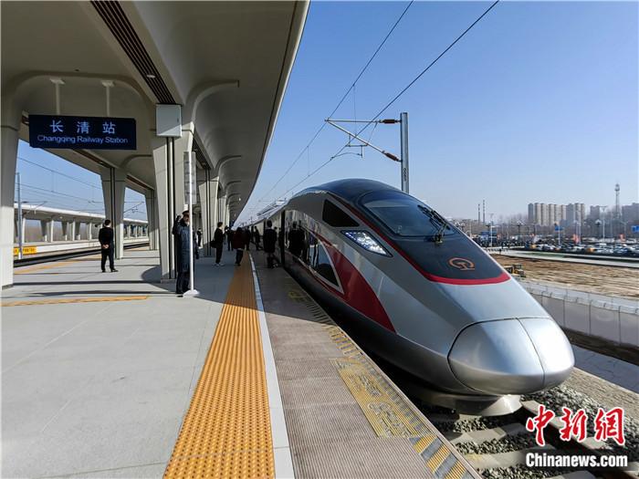 12月8日,濟鄭高鐵全線通車。圖為在濟南長清站始發(fā)前往鄭州的復興號列車。沙見龍 攝