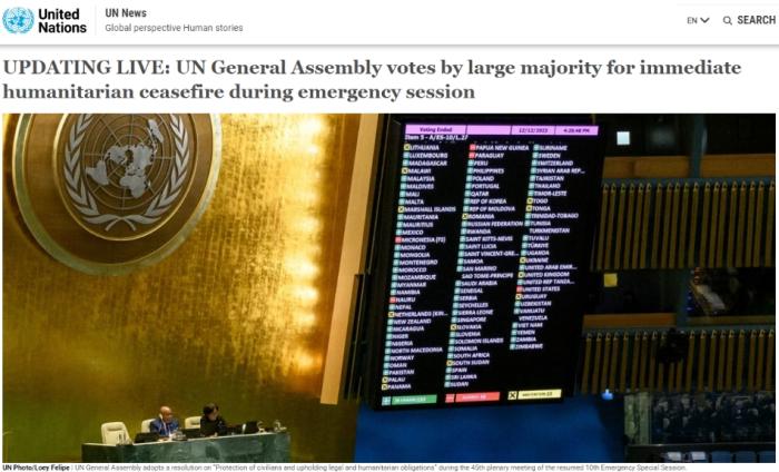 消息稱,包括美國和以色列等10個國家投了反對票。