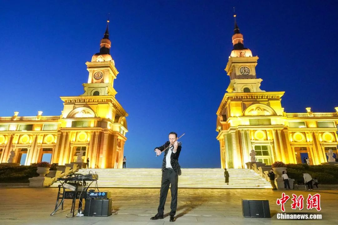 9月13日,黑龍江省首屆中俄地方文化藝術(shù)季街頭路演在音樂(lè)長(zhǎng)廊舉行。演奏者用小提琴演奏《如愿》。中俄音樂(lè)文化交流廣泛而深入。趙宇航攝