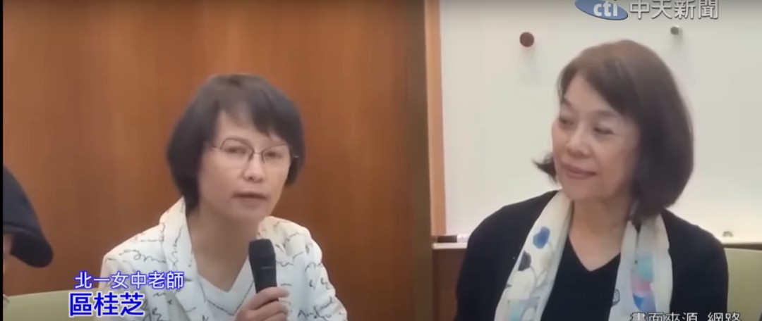 區(qū)桂枝老師在記者會(huì)上痛批“無恥”課綱。(圖源自臺(tái)灣中天新聞視頻截圖)