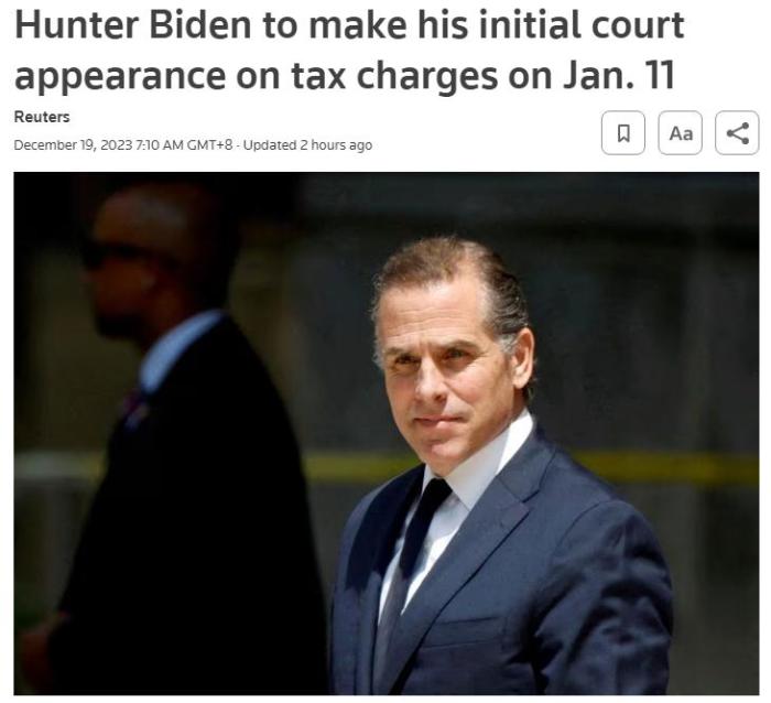 中新網(wǎng)12月19日電 據(jù)路透社18日?qǐng)?bào)道,法庭文件顯示,美國(guó)總統(tǒng)喬·拜登的兒子亨特·拜登將于2024年1月11日就稅務(wù)指控,在洛杉磯首次出庭。