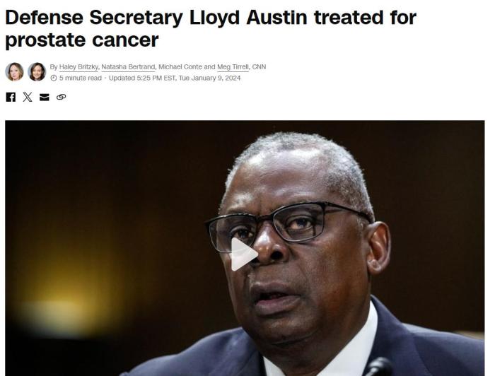 中新網(wǎng)1月10日電 綜合外媒報(bào)道,當(dāng)?shù)貢r(shí)間9日,美國(guó)沃爾特·里德國(guó)家軍事醫(yī)學(xué)中心發(fā)布的一份聲明指出,美國(guó)國(guó)防部長(zhǎng)奧斯汀被診斷出患有前列腺癌,并出現(xiàn)并發(fā)癥,導(dǎo)致他于1月初被送往醫(yī)院。目前,奧斯汀仍在接受治療。