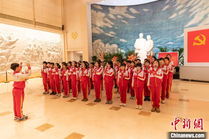 隨后,天津市川府里小學(xué)學(xué)生為大家?guī)砭世收b《為中華之崛起而讀書》,再現(xiàn)了周恩來青年時(shí)代在奉天(今沈陽)東關(guān)模范學(xué)校上學(xué)時(shí)立下的宏偉志向。伴隨著《紅星閃閃》的嘹亮歌曲,新時(shí)代少年立下了“故今日之責(zé)任,不在他人,而全在我少年。少年智則國智,少年富則國富,少年強(qiáng)則國強(qiáng).......”的鏗鏘誓言。