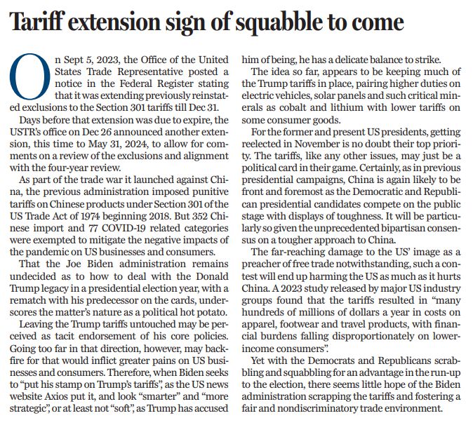 原文標(biāo)題:Tariff extension sign of squabble to come