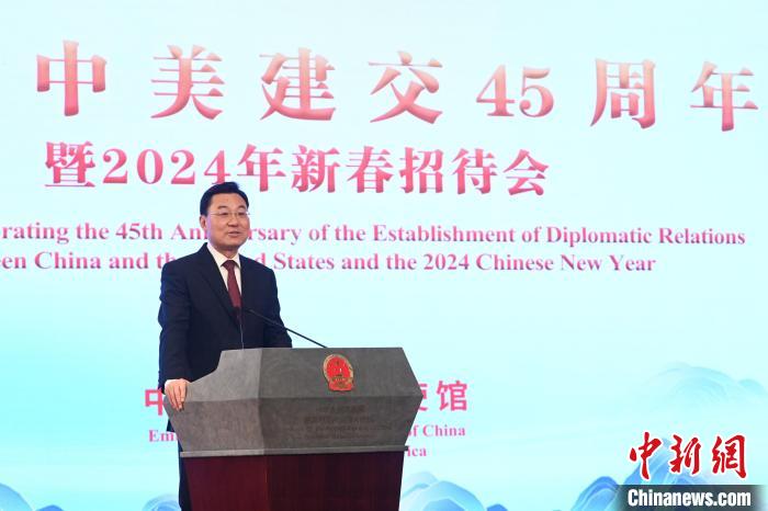 當(dāng)?shù)貢r(shí)間1月16日,中國(guó)駐美大使謝鋒在華盛頓舉辦的紀(jì)念中美建交45周年暨新春招待會(huì)上致辭。中新社記者 陳孟統(tǒng) 攝