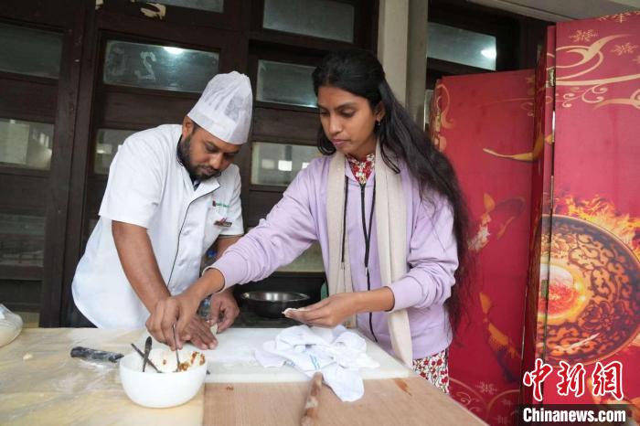 圖為學(xué)生體驗(yàn)包餃子。主辦方 供圖