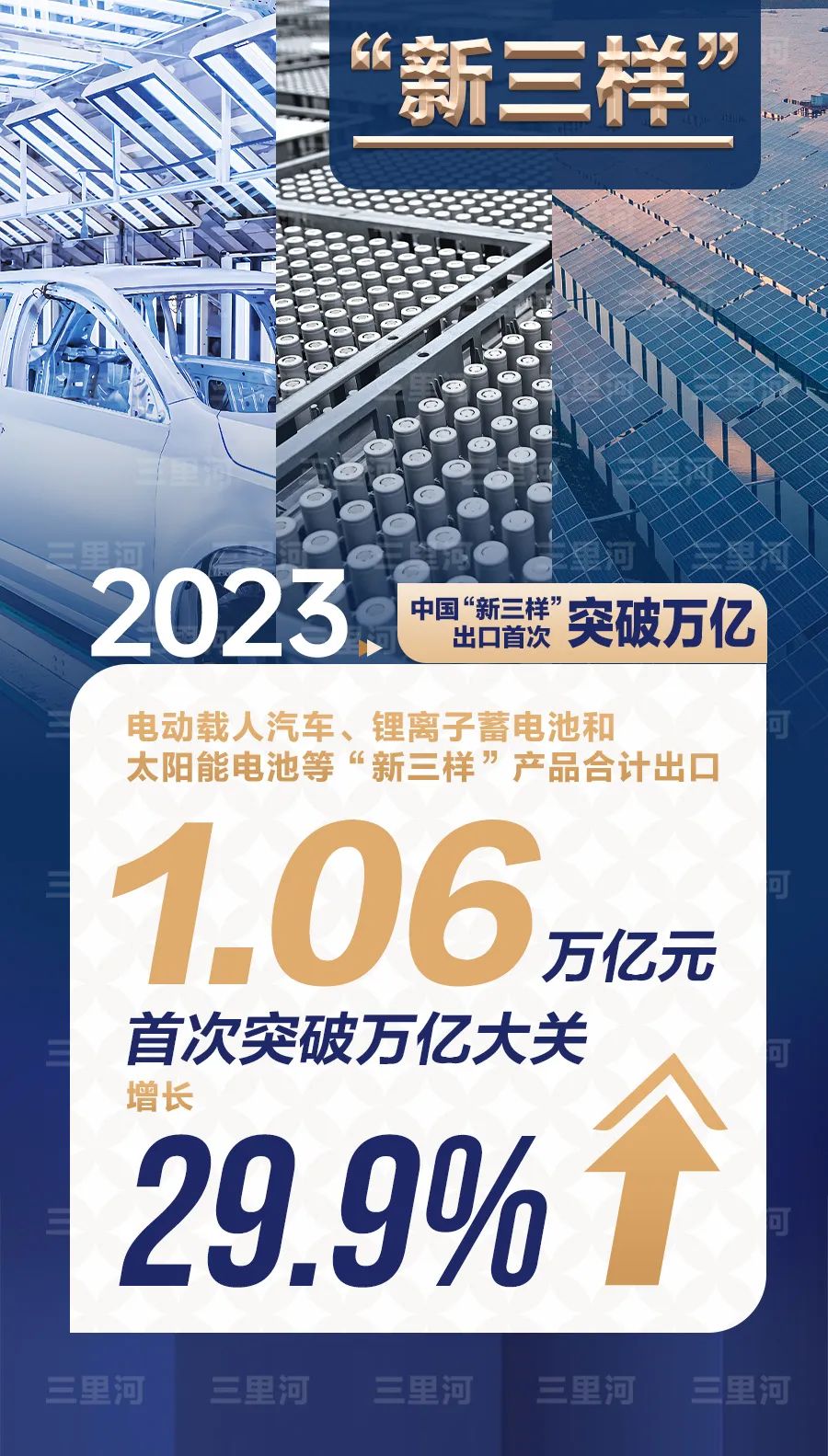 活力來(lái)自新動(dòng)能——制造業(yè)技改投資增長(zhǎng)3.8%,高技術(shù)產(chǎn)業(yè)投資增長(zhǎng)10.3%,快于全部固定資產(chǎn)投資的增速。2023年電動(dòng)載人汽車、鋰電池和太陽(yáng)能電池等“新三樣”產(chǎn)品合計(jì)出口1.06萬(wàn)億元,首次突破萬(wàn)億大關(guān)。中國(guó)經(jīng)濟(jì)在加快培育新質(zhì)生產(chǎn)力中不斷發(fā)展壯大。