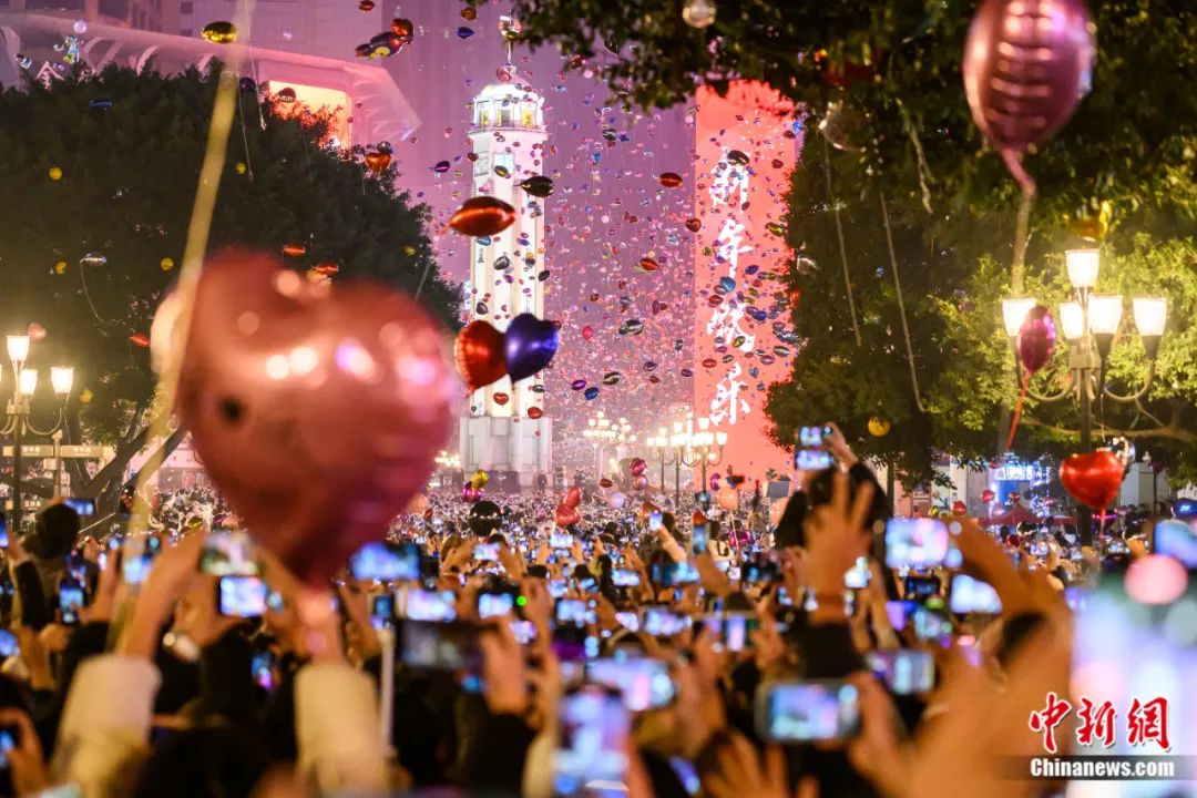 2024年1月1日,民眾在重慶解放碑步行街跨年迎新。何蓬磊 攝