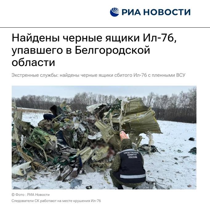 中新網(wǎng)1月25日電 據(jù)俄新社當(dāng)?shù)貢r(shí)間25日報(bào)道,在俄羅斯別爾哥羅德州墜毀的伊爾-76運(yùn)輸機(jī)的兩個(gè)黑匣子目前均已找到,已移交給調(diào)查人員。