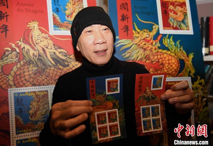 當(dāng)?shù)貢r(shí)間1月26日,法國(guó)發(fā)行龍年生肖郵票,為中法建交60周年增添濃郁的節(jié)慶氛圍。圖為法國(guó)郵政官員展示郵票。 中新社記者 李洋 攝