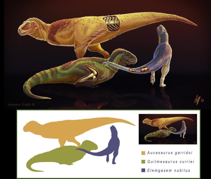 在本項(xiàng)研究中,論文第一作者兼通訊作者、香港中文大學(xué)和阿根廷國立內(nèi)格羅河大學(xué)Mattia A. Baiano與同事及合作者一起,利用計算機(jī)斷層掃描(CT)和骨骼組織學(xué)分析,研究了3組獸腳類恐龍的化石遺骸——分別來自加氏奧卡龍、迷霧嚙王龍和柯氏基爾梅龍,它們均生活在白堊紀(jì)晚期(距今約9000萬至7000萬年前)的南美洲。3個物種均為阿貝力龍科的獸腳類恐龍,這類恐龍的典型特征是前肢極短,頭骨深且有力并常生有冠、角等骨質(zhì)裝飾部位。