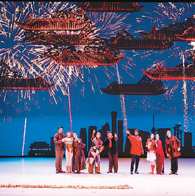 舞臺上,紅彤彤的燈籠、喜慶的春聯(lián)、熱鬧的廟會奏響了中國農(nóng)歷新年的序曲;“團團”和“圓圓”家的年夜飯彰顯了中國禮儀之邦的待客之道、尊老愛幼的傳統(tǒng)美德,一張全家福更傳達(dá)了中國人對親情的重視和對團圓的向往;“胡桃夾子”大戰(zhàn)“年”獸,則充滿童趣地演繹了“過年”的傳說;而當(dāng)寓意吉祥的仙鶴在蒼勁的松樹下迎著朝陽翩翩起舞,西方芭蕾藝術(shù)在中國文化意象中煥發(fā)出了美妙的東方神韻;扇子舞、絲綢舞、風(fēng)箏舞、陀螺舞……一個個頗具中國元素的慶典場面讓阿聯(lián)酋觀眾游歷在瑰麗多姿的中國傳統(tǒng)文化中。