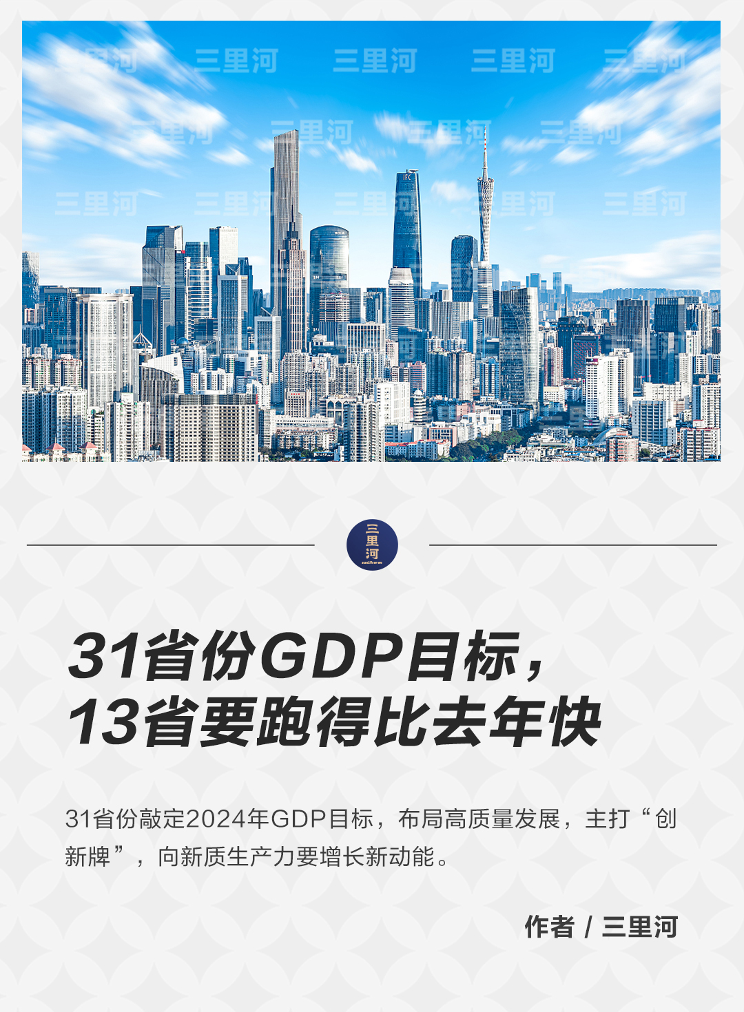 省級地方兩會是觀察中國經濟的重要窗口。目前,中國31個省區(qū)市2023年GDP數據全部出爐,2024年經濟增長預期目標亦全數公布。