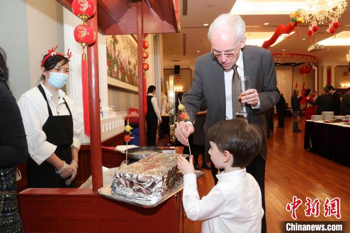 當(dāng)?shù)貢r(shí)間2月1日晚,加拿大首都渥太華,中國(guó)駐加拿大大使館舉行2024年春節(jié)招待會(huì)。圖為現(xiàn)場(chǎng)制作的中國(guó)風(fēng)味小吃冰糖葫蘆吸引來賓品嘗。中新網(wǎng)記者 余瑞冬 攝