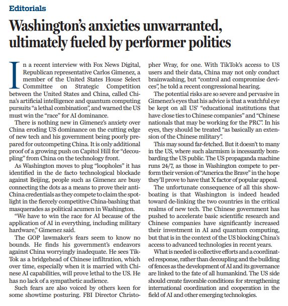 在華盛頓著手堵塞對(duì)華技術(shù)封鎖“漏洞”之際,吉門(mén)尼斯等人上傳下跳,忙于證明他們的反華資格,在競(jìng)爭(zhēng)激烈的“抨擊中國(guó)”活動(dòng)中爭(zhēng)奪聚光燈。