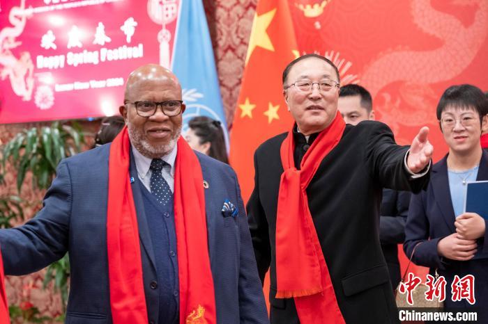 當(dāng)晚,中國常駐聯(lián)合國代表團(tuán)在紐約駐地舉行龍年新春招待會。