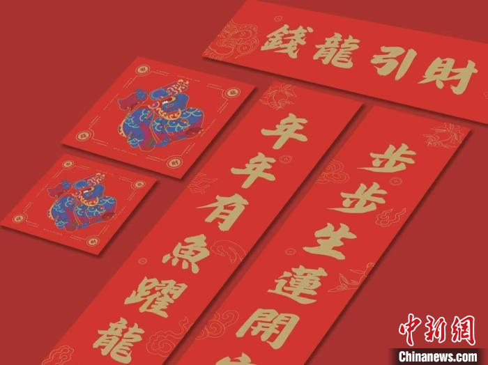 為迎接甲辰龍年,以傳統(tǒng)年畫“錢龍引進(jìn)”主體圖案為變體應(yīng)運(yùn)而生的不僅有春聯(lián)、福字、紅包等,還有日歷、桌布、夜燈等生活用品,蘊(yùn)含著年畫元素的文創(chuàng)產(chǎn)品近期銷售火爆,頗受年輕人喜愛。