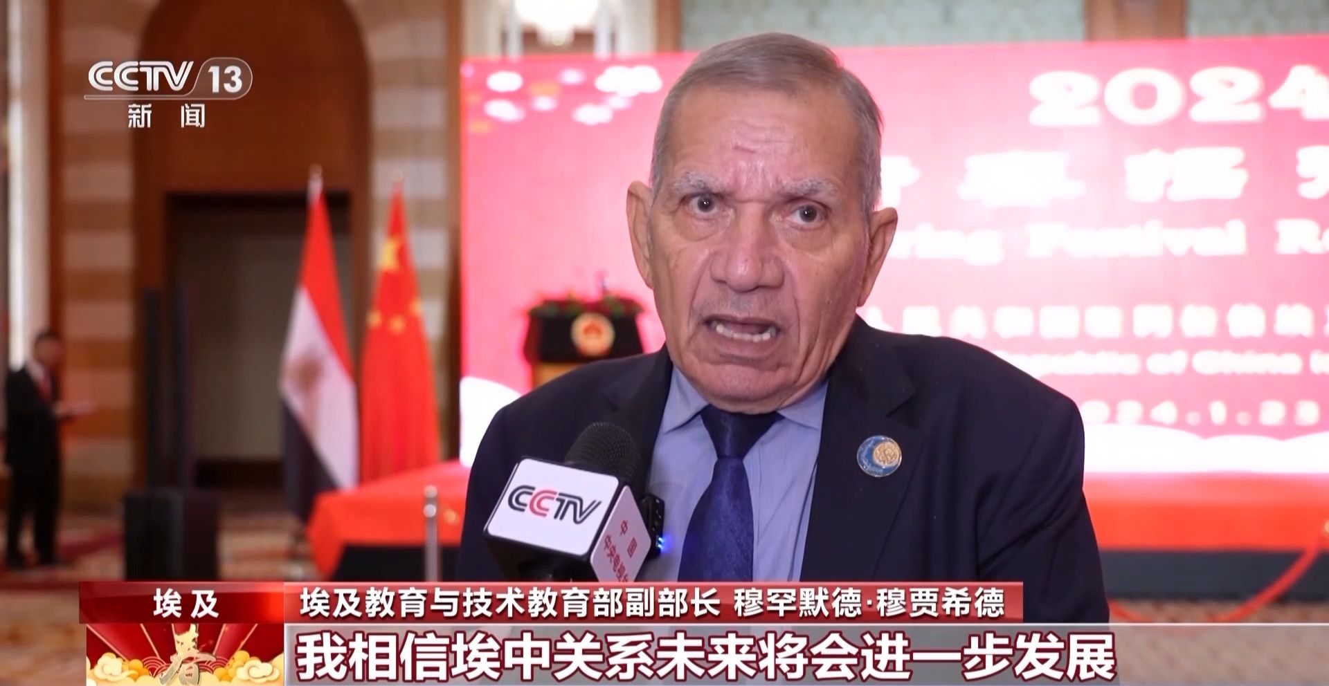 埃及教育與技術(shù)教育部副部長 穆罕默德·穆賈希德:我相信埃中關(guān)系未來將會進(jìn)一步發(fā)展并實現(xiàn)更多合作,我想借此機會向中國人民致以春節(jié)的問候。