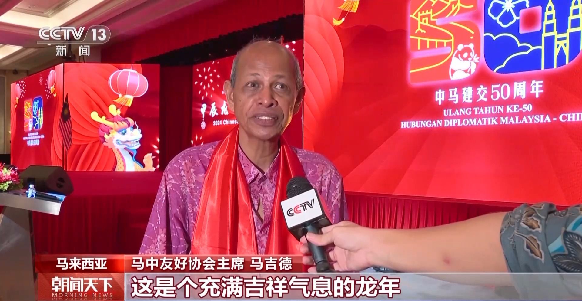 馬中友好協(xié)會主席 馬吉德:這是個充滿吉祥氣息的龍年,我知道龍在中國文化中是一個非常重要,富有傳奇色彩的象征,我們預(yù)祝龍年中馬兩國人民建立起更加穩(wěn)定、繁榮和堅固的友誼。(央視新聞客戶端)