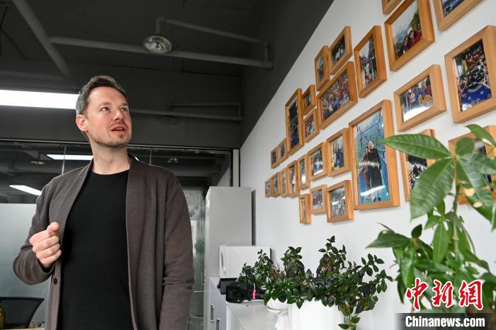 1月11日,李納德講述照片墻上外國人游覽中國的故事。中新社記者 李嘉嫻 攝