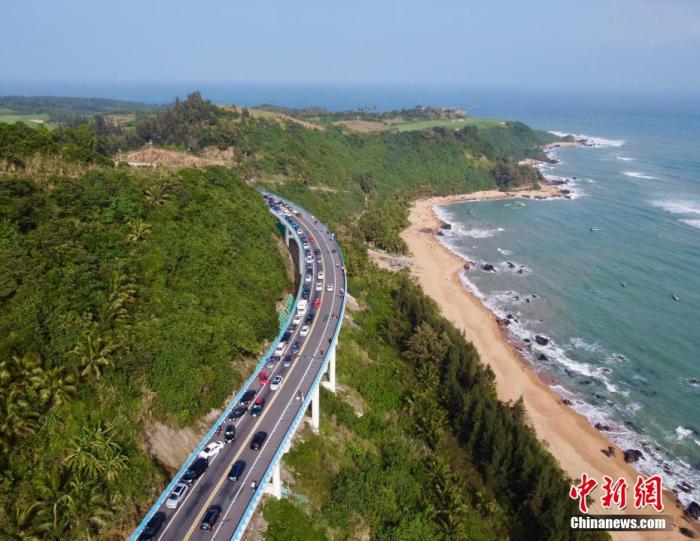 圖為航拍海南環(huán)島旅游公路萬(wàn)寧山欽灣段,沿途秀麗風(fēng)景吸引眾多游客自駕前來(lái)游玩。陳英清攝