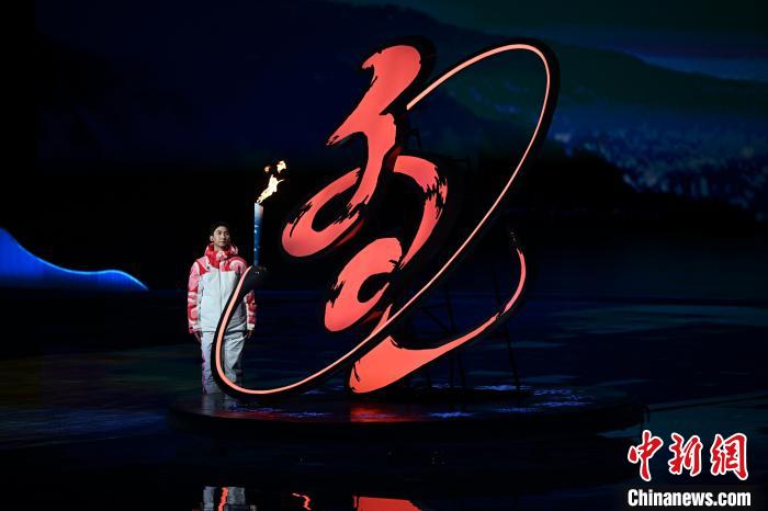 2月17日,第十四屆全國冬季運動會開幕式在內(nèi)蒙古呼倫貝爾市海拉爾區(qū)內(nèi)蒙古冰上運動訓練中心舉行。圖為武大靖點燃火炬。 中新社記者 崔楠 攝