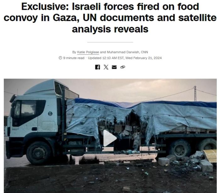 報(bào)道指出,以軍的炮擊導(dǎo)致車上的小麥粉等大量物資被毀,未造成人員傷亡。CNN多次向以色列國防軍請求予以置評,但尚未得到回應(yīng)。