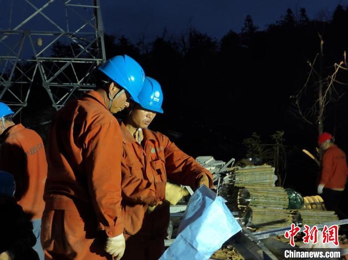2月14日,國網(wǎng)浙江電力援湘搶險隊在現(xiàn)場施工作業(yè)?!》綅?攝