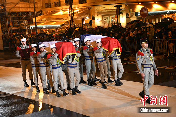 當?shù)貢r間2月21日晚,法國二戰(zhàn)時期抵抗德國納粹侵略的戰(zhàn)士米薩克·馬努尚與他的夫人梅麗內一同入葬先賢祠。馬努尚是首位入葬先賢祠的法共抵抗運動成員。 中新社記者 李洋 攝