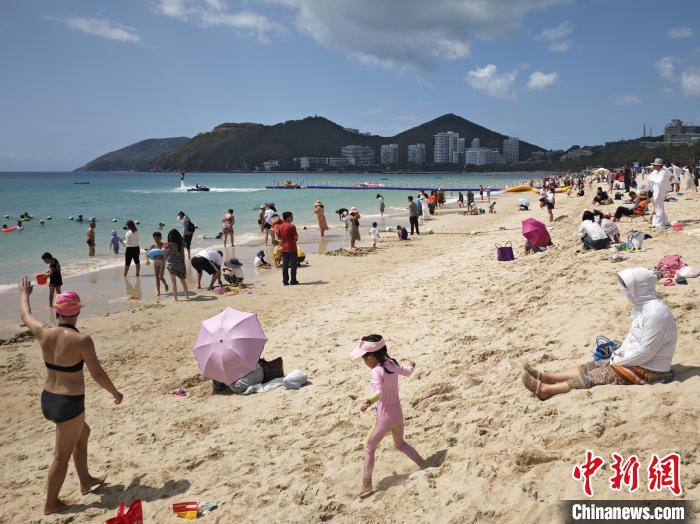 2月24日,游客在三亞大東海旅游區(qū)游玩。張?jiān)潞?攝