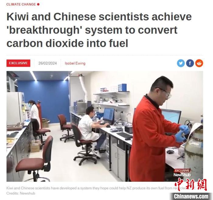 新西蘭和中國(guó)科學(xué)家正合作開(kāi)發(fā)一種將二氧化碳轉(zhuǎn)化為有用物質(zhì)的系統(tǒng)。圖片來(lái)源于新西蘭Newshub網(wǎng)站截圖。