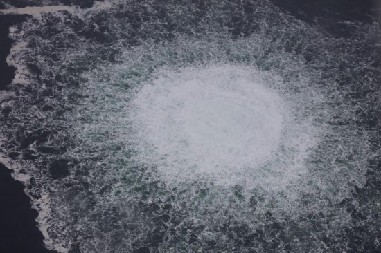 這張瑞典海岸警衛(wèi)隊2022年9月27日發(fā)布的航拍照片顯示的是一處“北溪”天然氣管道泄漏點(diǎn)。新華社發(fā)(瑞典海岸警衛(wèi)隊供圖)