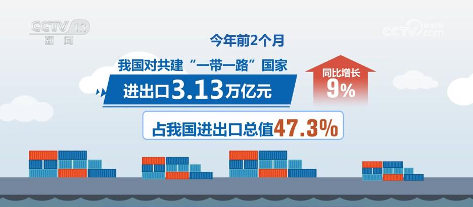 海關(guān)統(tǒng)計數(shù)據(jù)顯示,今年前2個月,我國對共建“一帶一路”國家進出口3.13萬億元,同比增長9%,占我國進出口總值的47.3%。其中,對東盟進出口9932.4億元,增長8.1%;對中亞五國進出口950.9億元,增長26%。同期,對RCEP其他成員國進出口1.94萬億元,增長3.5%;對拉美進出口5874.8億元,增長17.3%;對非洲進出口3389.4億元,增長17.3%。