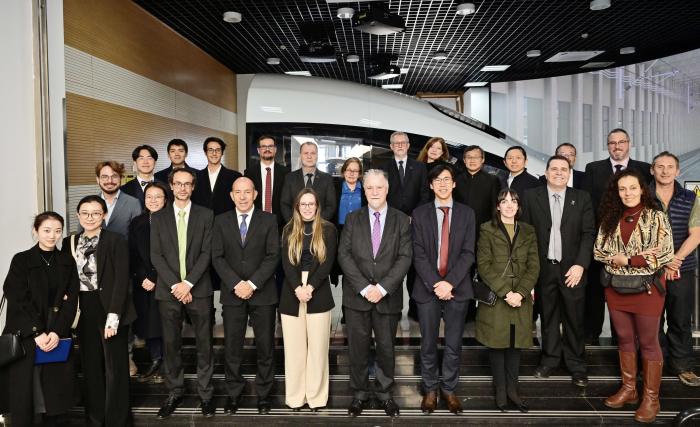 巴西教育訪華團(tuán)及北京交通大學(xué)代表在校內(nèi)國(guó)家重點(diǎn)實(shí)驗(yàn)室內(nèi)留影。 北京交通大學(xué) 供圖