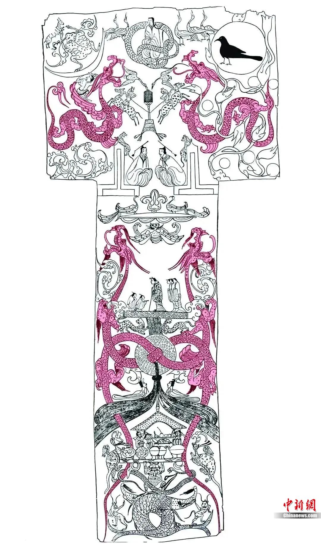 湖南長(zhǎng)沙馬王堆漢墓出土T形帛畫(huà)線圖。受訪者供圖