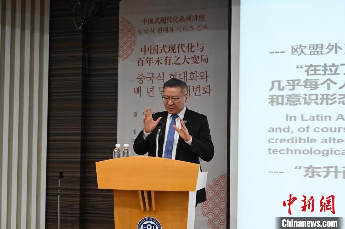 3月13日,復(fù)旦大學(xué)特聘教授、復(fù)旦大學(xué)中國研究院院長張維為以“百年未有之大變局與中國式現(xiàn)代化”為主題在韓進行演講。首爾中國文化中心 供圖