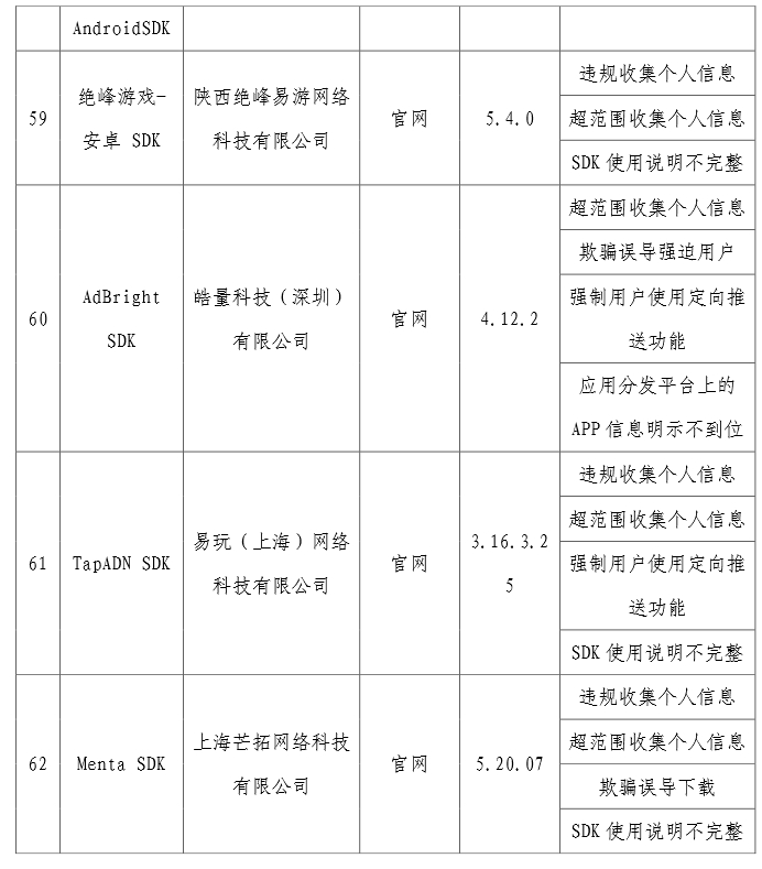 近期,工信部組織第三方檢測機(jī)構(gòu)對用戶反映突出的“搖一搖”亂跳轉(zhuǎn)、信息窗口“關(guān)不掉”以及違規(guī)收集使用個人信息等問題進(jìn)行檢查,共發(fā)現(xiàn)62款A(yù)PP及SDK存在侵害用戶權(quán)益行為。