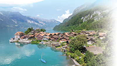 瑞士村莊伊瑟爾特瓦爾德位于阿爾卑斯山布里恩茨湖岸邊,風(fēng)景如畫(huà),村中自建房與周邊自然環(huán)境融為一體。