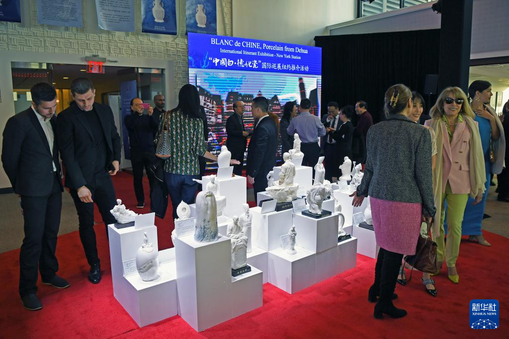 3月14日,在美國紐約,人們參加“中國白·德化瓷”國際巡展紐約推介活動。新華社記者 李睿 攝