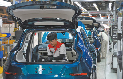 今年1月,中國(guó)車(chē)企長(zhǎng)城汽車(chē)旗下電動(dòng)汽車(chē)歐拉好貓?jiān)谔﹪?guó)羅勇新能源汽車(chē)制造基地正式下線(xiàn),成為泰國(guó)首款本土量產(chǎn)的純電車(chē)型,將加速泰國(guó)汽車(chē)行業(yè)電氣化轉(zhuǎn)型。圖為該制造基地的生產(chǎn)車(chē)間內(nèi),工人在進(jìn)行汽車(chē)裝配作業(yè)。