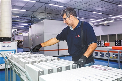位于巴西亞馬孫州首府馬瑙斯的比亞迪電池工廠(chǎng)主要生產(chǎn)磷酸鐵鋰電池模組,為巴西的電動(dòng)大巴提供可靠的新能源動(dòng)力,推動(dòng)了當(dāng)?shù)乜沙掷m(xù)能源產(chǎn)業(yè)的發(fā)展,為減少碳排放和環(huán)境保護(hù)作出了貢獻(xiàn)。圖為當(dāng)?shù)貑T工正在掃描電芯條碼。